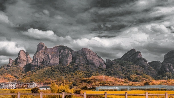 这是连城冠豸山边上的马头山,马头山的名字因其连绵山脉,其位马首而得名,冠豸山为马背,因其地势险恶,解放前土匪盘踞,祸害乡里,现改为“竹安寨风景区”