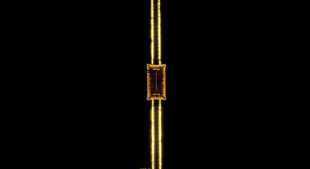 这张照片拍摄于红河州的南湖公园,在黑夜里显得那么的耀眼夺目,以笔直的线条相贴在南湖水面上。