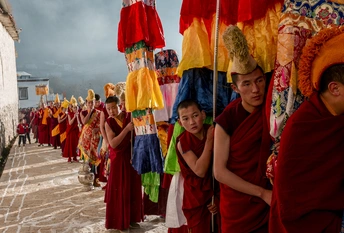 拍摄于云南香格里拉噶丹松赞林寺,2017年4月23日寺院德高望重的崩主大和佛圆寂,整个寺院僧人前来送行。