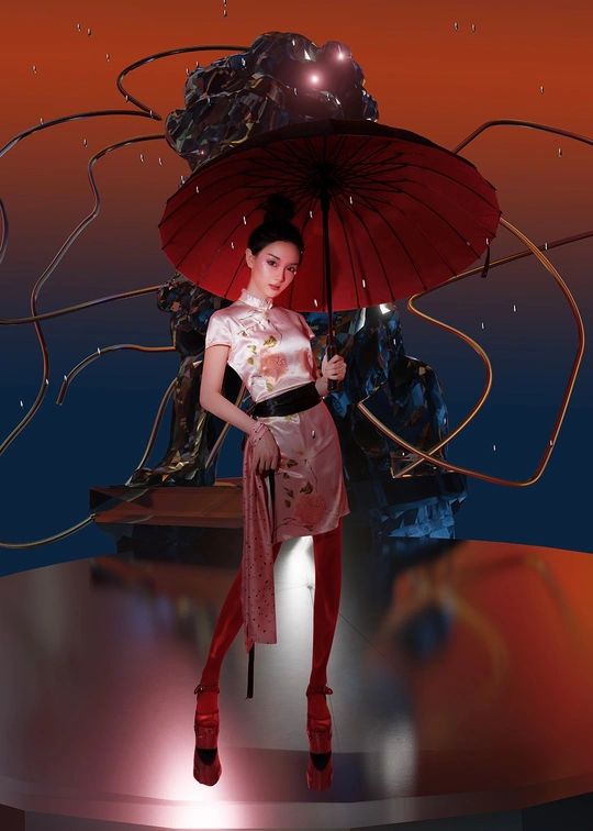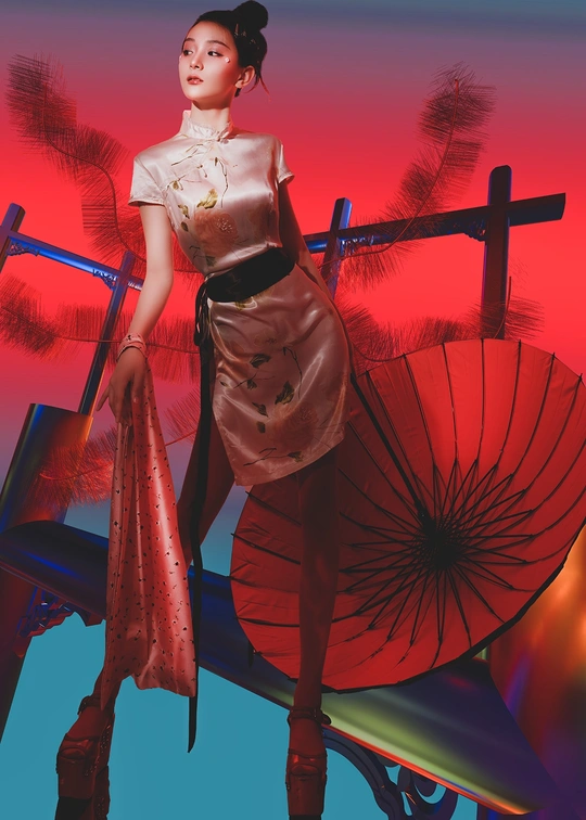 旗袍也可以这么拍,中画幅拍摄结合3D数字场景搭建