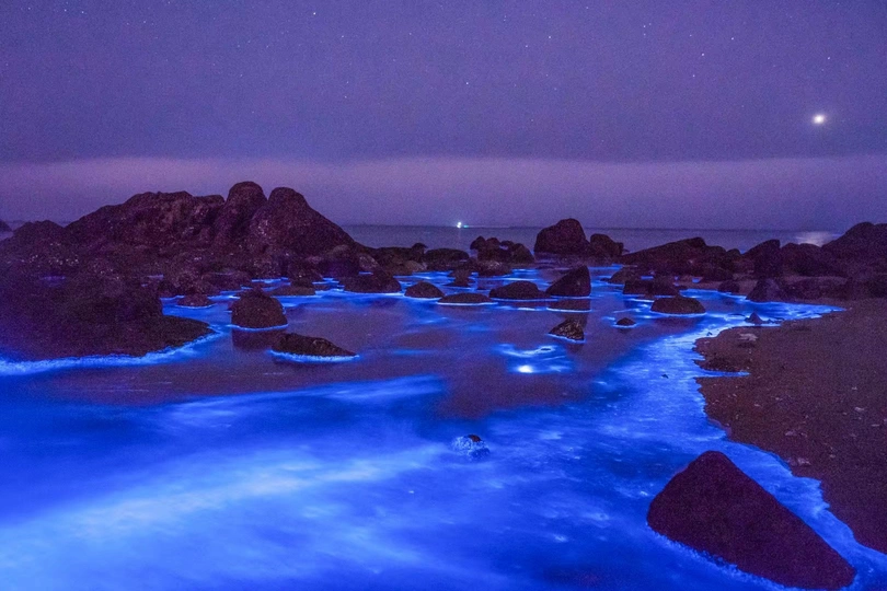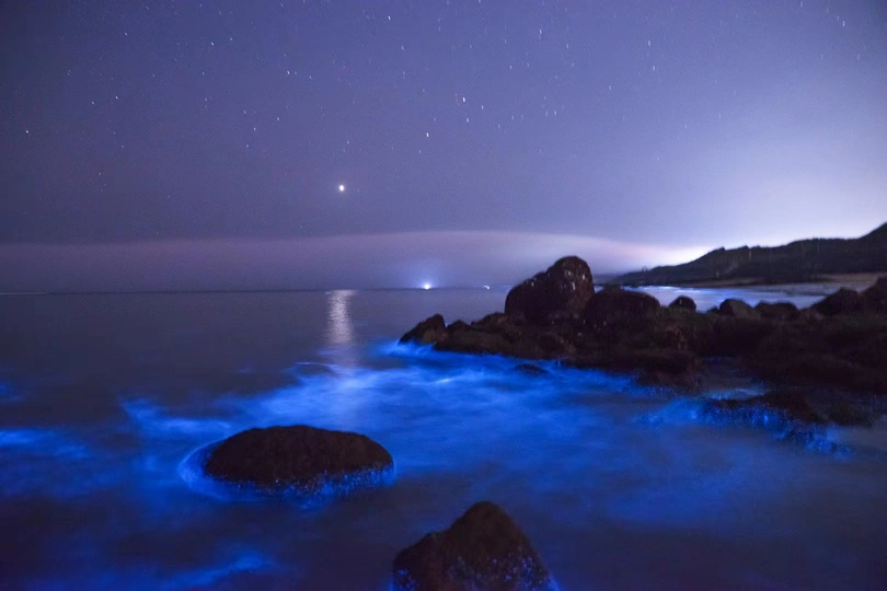 首次平潭追蓝眼泪,很幸运就遇到高等级大爆发,前方精准预报是关键。那天凌晨2点多到达平潭模镜村,等待涨潮。经验不足,曝光、感光度、色温等参数不停测试, 想表现的场景无法一一实现,期待下次追泪能有更大的收获。