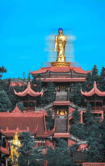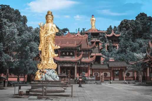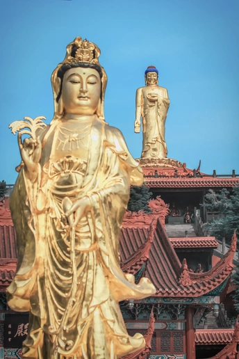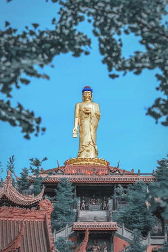 幽人何处住,古寺白云高。 问路不知远,到山方觉劳。 半窗看竹石,一枕听松涛。 我亦清幽者,煮茶读楚骚。 【宋】王商翁 距今已有600多年历史的白云寺,坐落在依山傍水的花源镇。 前有杨柳河,后靠牧马山,安静清幽,人立于院中,有心神宁和之感。远观整座寺庙,面前是笔直的白云大道,举首望向山顶,巍然耸立着9.9米高的阿弥陀佛,其震撼的视觉感受,让人体会到了大隐于市的超凡脱俗!