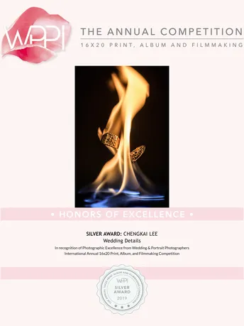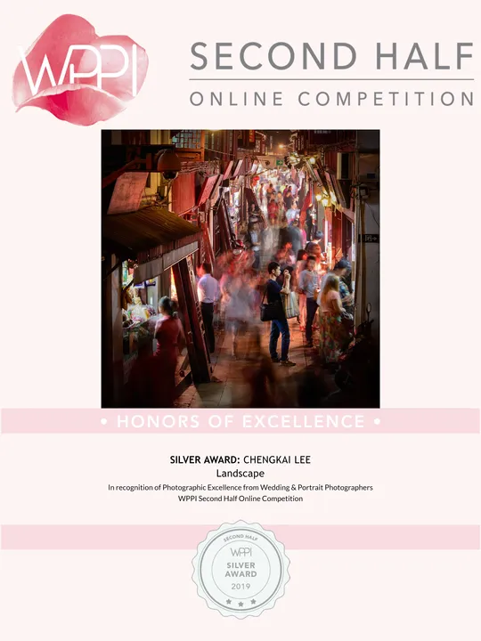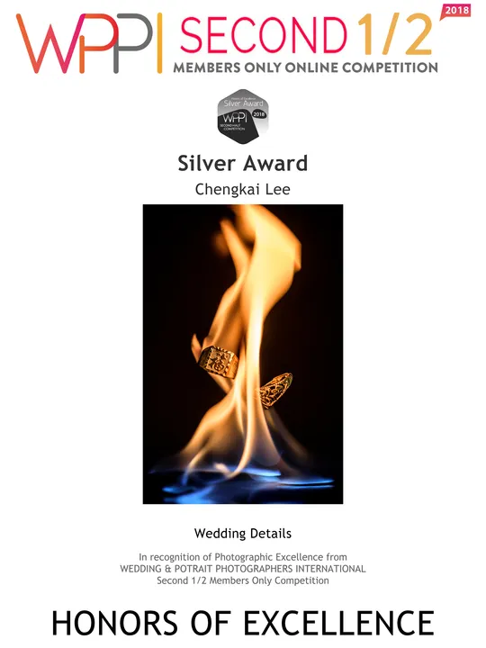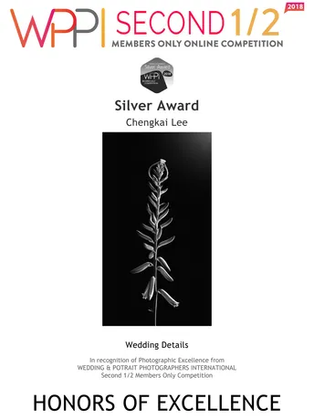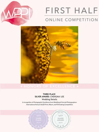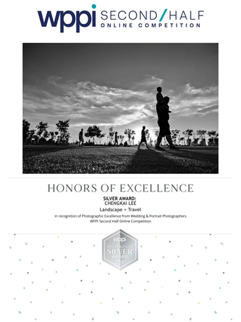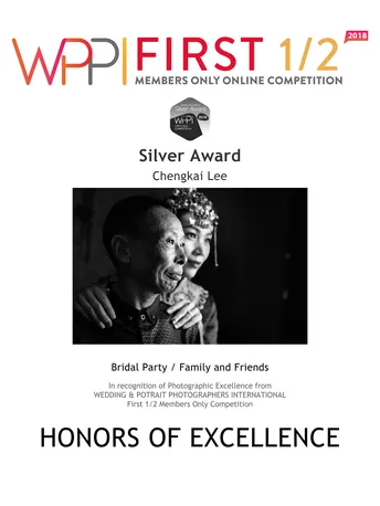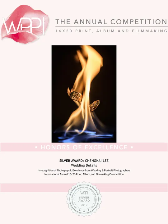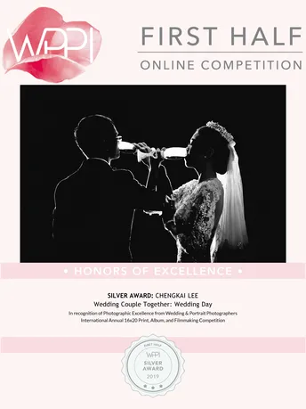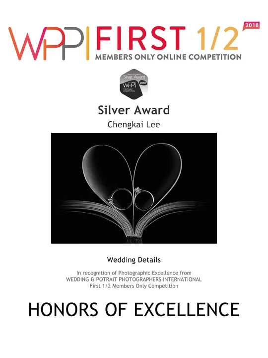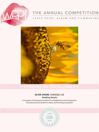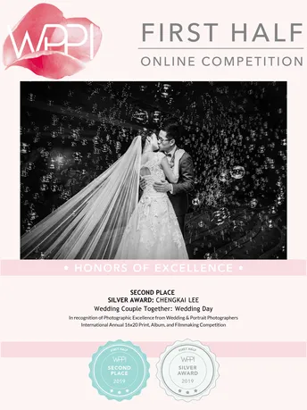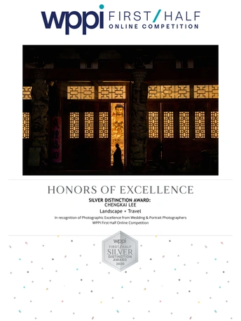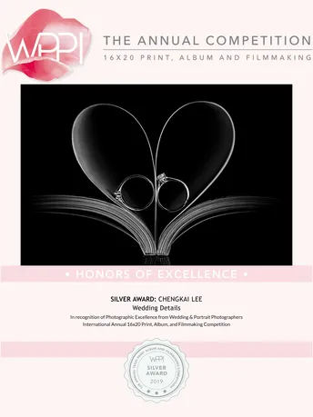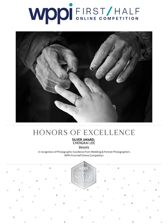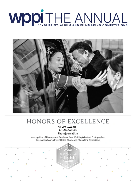 WPPI始于1978年,其目标是为婚礼摄影师服务,而婚礼摄影师当时被认为是摄影行业中被忽视的部分。WPPI一年共举办3项比赛,上半年网络比赛和下半年网络比赛以及在拉斯维加斯举行的16x20年度打印比赛。参赛摄影师每个年度周期的成绩最好的前四名作品得分都将于积分荣誉有关。打印比赛每年在拉斯维加斯举行,由来自世界各地的摄影大师担任评委。 比赛的奖项有:特级金奖:95分或更高;特级银奖:85-89分;金奖:90-94分;银奖:80-84分。每个类别中得分排在前5名的作品会被评委重新评判并打分,评出第一名、第二名和第三名。 我们国内的婚礼摄影师已在该比赛项目中取得了不错的成绩。像大家所熟悉的歪猫老师,是目前亚洲乃至华人中第一位获得该比赛WPPI Grand Master荣誉称号的摄影师,成为当之无愧的行业标杆。笔者也一直在追随着巨人的脚步而奋斗着,有幸在2018-2021四个赛季中获得了家庭类别单项第一名🥇、婚礼当日新郎新娘双人类别第二名🥈、婚礼细节类别第三名🥉等累计21个奖项。 感谢新人及朋友们一如既往的支持,山高路远,继续努力!