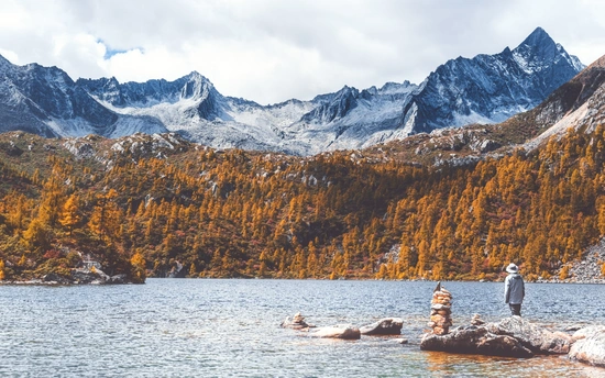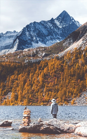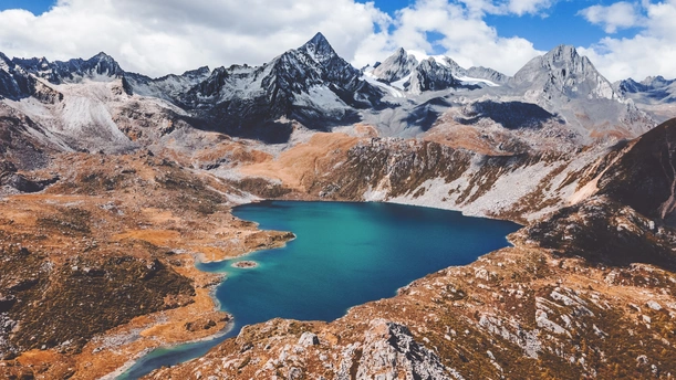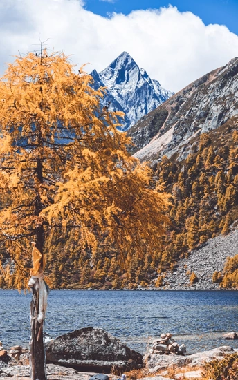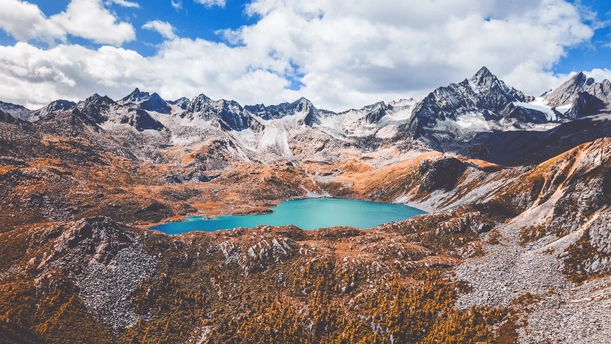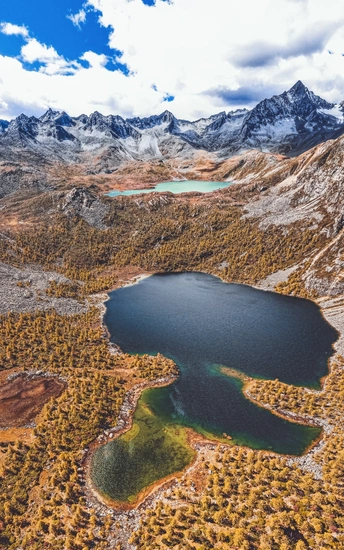 位于川西党岭,从起点徒步三个小时到达,对面的雪山就是党岭三神山中的夏羌涅阿。葫芦海航拍像一个葫芦,这海子网上还有个绿色的心形海子,当地人叫它卓母雍措。