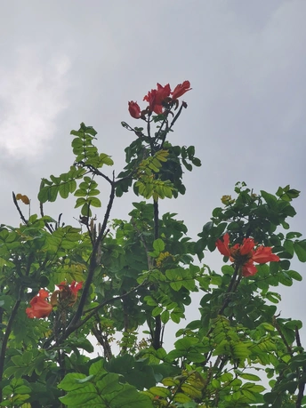 火焰树(学名:Spathodea campanulata Beauv.)是紫葳科、火焰树属乔木,树皮平滑,灰褐色。奇数羽状复叶,对生,连叶柄长达45厘米;小叶13-17枚,叶片椭圆形至倒卵形,伞房状总状花序,顶生,密集;被褐色微柔毛,具有明显的皮孔;花冠一侧膨大,基部紧缩成细筒状,檐部近钟状,桔红色,具紫红色斑点,内面有突起条纹,裂片5,阔卵形,不等大,具纵褶纹,外面桔红色,内面桔黄色。蒴果黑褐色,种子具周翅,近圆形,长和宽均为1.7-2.4厘米。花期4-5月。 火焰树原产非洲,广泛栽培于印度、斯里兰卡和中国。中国广东、福建、台湾、云南(西双版纳)均有栽培。火焰树生性强健,性喜高温,生长适温23-30℃,10℃以上才能正常生长发育。 火焰树是珍贵的热带木本花卉和优良的风景观赏树种。种子可以食用。列入《世界自然保护联盟濒危物种红色名录》(IUCN)2017年 ver 3.1——无危(LC)。