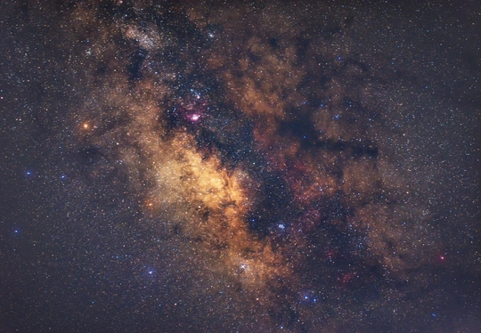 来到乡下老家,终于见到了伸手不见五指的黑,来到自家房顶,抬头望向天空,一条白色银带从天空东南跨至西南,激动不已,拿出相机开始拍,也是第一次拍银心,环境对星空影响真的很大,在城市中早已见不到这种环境,更不提肉眼可见的银河;小时候吃过晚饭就躺在台子上看星星闪烁,现在一片没有光污染的天空是多少摄影师和爱好者的奢望,西北真的有美丽的风景大家快来看。