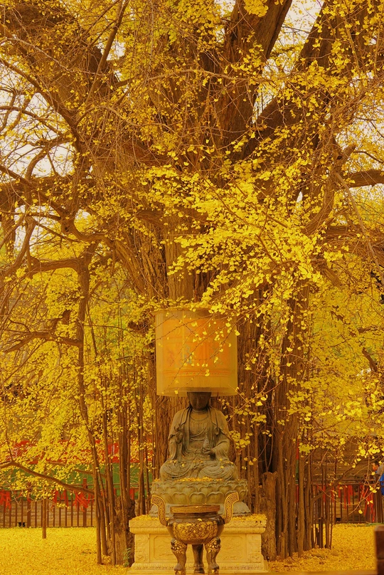 一场秋雨过后 这稀稀落落的叶子也所剩无几了 这棵一千四百多年的树 也再一次迈入了初冬