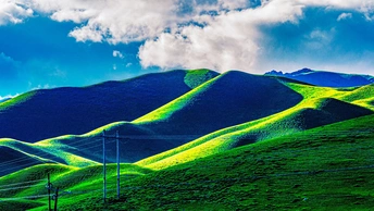 自驾去新疆,行驶在独库公路上时遇见这草原在阳光下非常美丽,故停车拍下了这一景色。