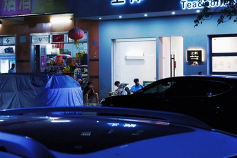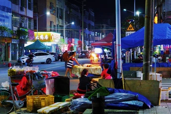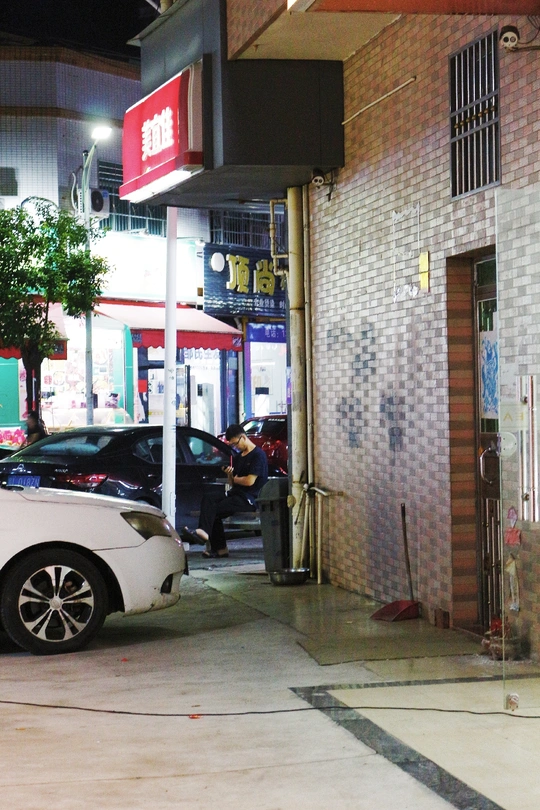 (相机)摄影作品:《休闲工作的生活》 调色 调色处理 (有一位阿姨,在卖水果,是香蕉,每个人,都会休闲看手机和聊天,有一位叔叔,吃着夜宵,生活的意义,还不错的,每个人,日常生活和日常习惯,习惯这样子的生活)
