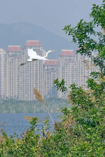 在厦门园博苑拍摄 感受到了一种人与自然和谐共生的即视感 对面就是厦门集美区,那些高楼不知道是哪个地产,其建筑风格与集美大学红砖燕尾,飞檐翘脊,红顶双坡的嘉庚风格保持了统一