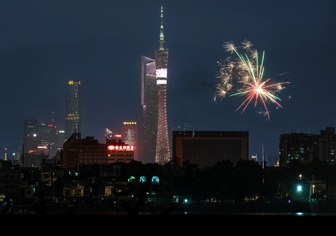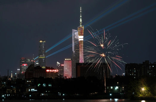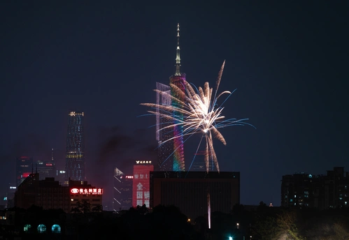 广州塔与烟花同框