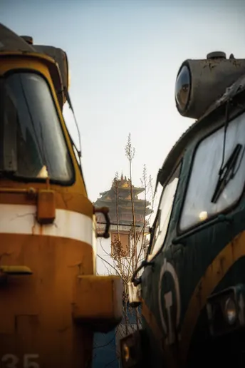 在火车间隙远眺阅江楼,时代的列车承载历史的进程