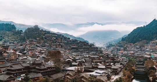 西江千户苗寨,位于贵州的群山之间,是一个充满历史和文化的地方。虽然已经商业化了,但是从图片中可以看出,这个古老的村落由数以千计的传统木质结构房屋组成,它们沿着蜿蜒的河流和山脉错落有致地分布。这些建筑在历史的长河中见证了苗族文化的繁荣与发展。河流穿村而过,为村民提供了生活所需的水源,同时也为整个景区增添了一丝宁静与和谐。远处的山峦被云雾缭绕,为这个古老的村落增添了一抹神秘色彩。无论是建筑、自然还是文化,西江千户苗寨都是一个值得探索和体验的地方。