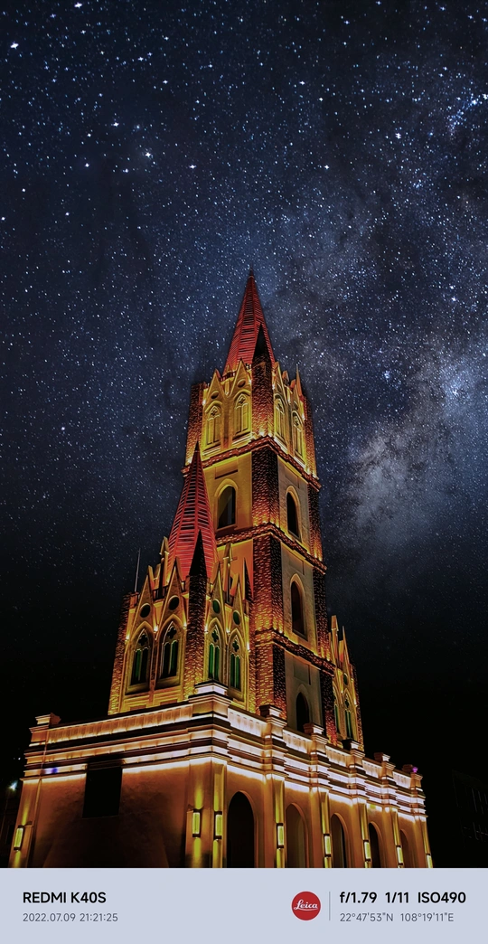 拍摄于2022年7月份的邕江南岸亭子码头附近,星空和月亮是小米相册自带的魔法换天功能。