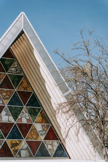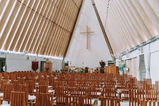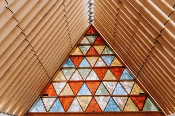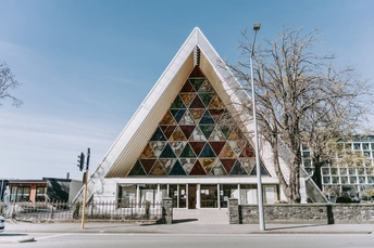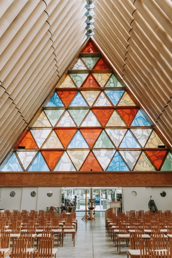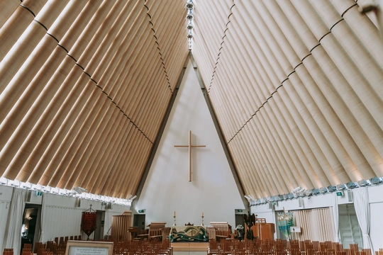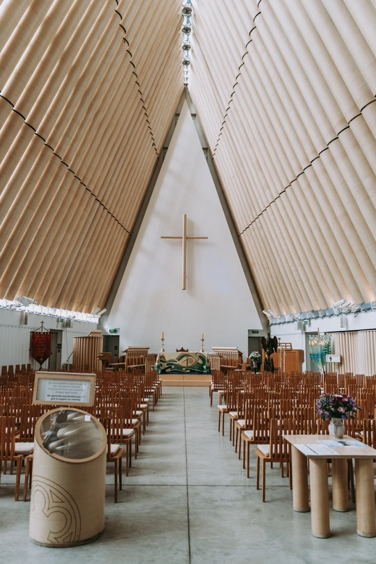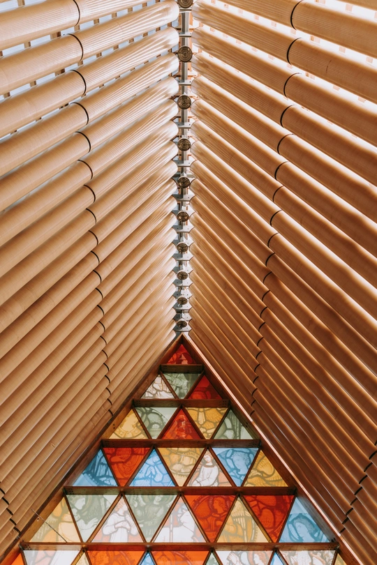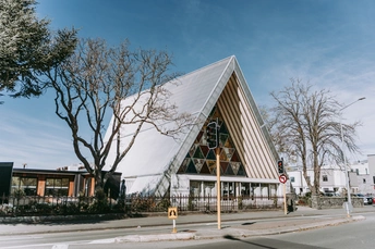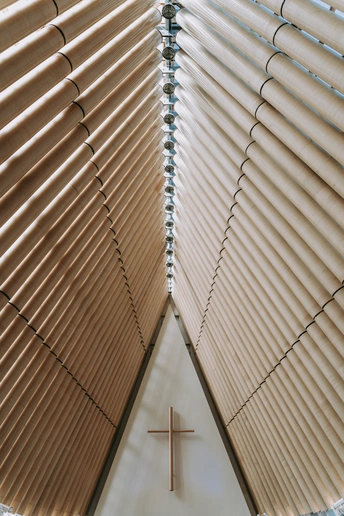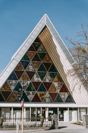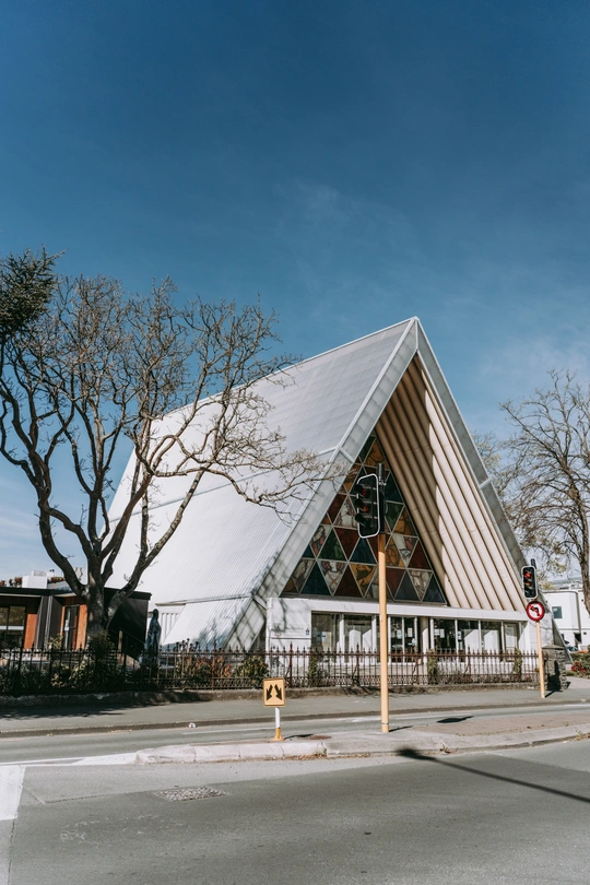 纸板教堂(Cardboard Cathedral)位于新西兰南岛的基督城(Christchurch),这座城市在2011年经历了一场大地震,导致许多建筑受损。为了替代在地震中被毁的标志性建筑——基督城大教堂,纸板教堂被设计并建造起来,作为一个临时的礼拜场所和社区中心。 纸板教堂由日本著名建筑师坂茂设计,以其创新的建筑方法和材料而闻名。这座教堂使用纸板管作为主要建筑材料,结合了传统教堂的元素和现代建筑技术,展现了一种简约而富有创意的美学。 纸板教堂不仅是一个宗教场所,它也是基督城灾后重建的象征,代表了社区的韧性和对未来的希望。教堂内部空间宽敞,有一个大型的彩色玻璃窗,为教堂内部增添了色彩和光线。