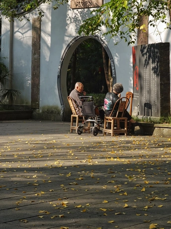 这张照片通过色彩、光影和构图展现了老年人的宁静生活,但仍有一些改进空间。在色彩方面,运用了温暖的色调,尤其是秋天的落叶与周围环境形成了和谐的对比,有效传达了温馨宁静的氛围。然而,照片中有些元素的色彩稍显单调,增加一些对比色或饱和度的调整,可以增强画面的层次感。 在光影方面,光线柔和且方向性强,营造出舒适的氛围,特别是光影在地面上的投射增加了画面的立体感。然而,主体的面部光影略显平面,可以考虑使用反射或补光更好地突出人物的表情。 构图上,主体位置合理,遵循了三分法则,令人感觉平衡。唯一的不足是,前景的落叶虽然美观,但可能稍微分散观者的注意力,可以稍微减少前景杂乱的元素以聚焦于主体。 在后期处理方面,色调和对比度的调整相对自然,没有明显的过度修饰,保持了画面的真实感,整体处理适度。但若能加强一些局部的锐化,使得细节更为突出,将更能吸引观者的眼球。 主题原创性方面,体现了老年人在自然环境中放松的主题,展现了社会的温柔面,然而,若能加入更多故事性元素或者动态的表现,可能会使作品更具深度。 情感共鸣上,照片很成功地展现了宁静的氛围,能够引起观者的共鸣。综合来看,整体表现优秀,得分85。