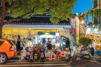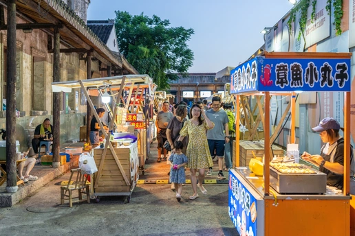 当夜幕降临,绚烂多彩的灯火在古运河畔亮起时,属于三堡街的时刻来了!三堡街夜市作为常州城市有趣的角落之一,在这里传统与创新的碰撞,打造出了一个独特的市集文化氛围!从前年爆火全市的后备箱集市,到如今的三堡街夜市,已然成为了大家下班放学后逛吃逛吃的“深夜食堂”。沿街和院内的美食品类丰富,更有小时候的味道在不断刺激我们的味蕾,总会不由自主的说道:“就是这个味道”!