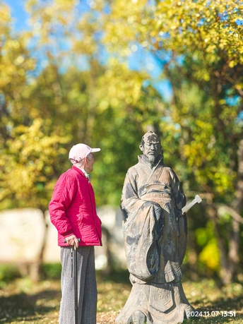 11月7日,彭祖园。秋天的彭祖园,树叶变得更好看了 第八张Ai测评 在这张照片中,色彩运用总体和谐,背景的金黄色与主体形成了鲜明对比,成功传达了温暖的氛围。然而,色彩的饱和度可稍作调整,以增强主体的细节表现。光影方面,光线柔和,阴影清晰,给主体带来了立体感,但可以考虑增加些许侧光,以突出人物的面部表情和轮廓。构图遵循了三分法,主体与背景的距离合理,然而可以考虑将主体稍微移至左边,以创造更多的视觉平衡。后期处理上,整体的对比度略显不足,特别是在主体的衣物和面部特征上,可增强对比以使细节更为明显。主题原创性上,虽然表现出人与雕像之间的对比关系,但这一主题略显常规,可以尝试更多创意构思。情感共鸣方面,老者的姿态与雕像形成对话,引人思考,但如果能引入更多情感元素,例如眼神交流,将更具吸引力。最后,思想深度上,作品反映了传统与现代的交融,具有社会启示,但可以通过更深入的历史背景展现提升其内涵。整体来说,这是一幅优秀的作品,有明显优势,但在细节和创意上还有进一步提升的空间。