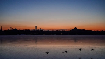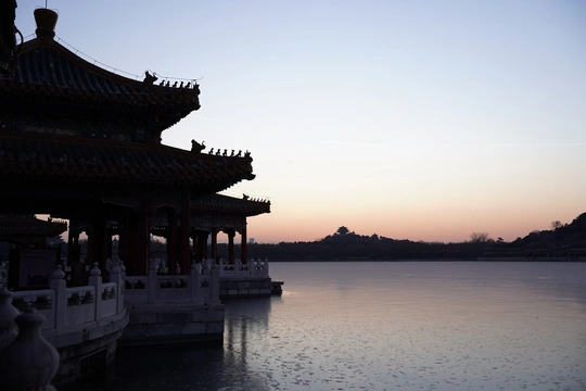 这张照片整体表现良好,展现了一幅日出时分湖光山色的宁静景象。以下是对其各方面的详细评价: **色彩:** 照片的色彩运用以冷暖对比为主,日出的暖色调(橙色、黄色)与天空和湖面的冷色调(蓝色、紫色)形成对比,营造了日出时分的氛围。然而,暖色调的饱和度稍高,略显生硬,可以考虑降低暖色调的饱和度,使其更加柔和自然。此外,湖面的颜色偏蓝,略显单调,可以尝试在后期增加一些紫色的渐变,使湖面的色彩更加丰富。 **光影:** 光线以日出时的柔和光线为主,在湖面产生了镜面反射,增强了画面的空间感和纵深感。太阳的星芒效果处理得当,但整体光比过大,导致前景的湖面细节丢失,轮廓有些发黑。可以考虑在前期拍摄时使用渐变滤镜或者后期进行高光和阴影的调整,以保留更多的细节。此外,白塔的剪影效果略显平淡,可以在后期通过调整对比度来突出其轮廓。 **构图:** 整体构图较为平稳,画面横向分割为三个部分:天空、地平线和水面。地平线位于画面的三分之一处,基本符合三分法构图原则,但主体较为分散,白塔位于画面的右侧,略显边缘化,日出则位于左侧。可以尝试使用黄金分割或者引导线等构图方式,将观者的视线更有效地引导至画面主体。