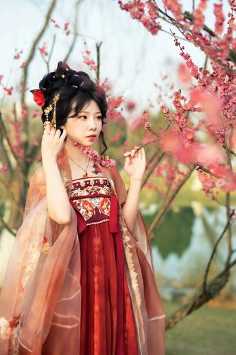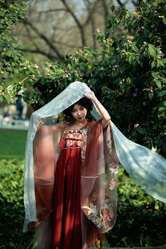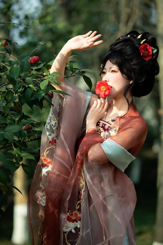 金陵春深,玄武湖畔,山茶吐艳。 佳人着汉服,娉婷其间。 逆光映霓裳,低眉拈花,顾盼生辉。 光影交织处,人花两相欢。 模特:宁宁 妆造&后期:咔咔 摄影:许摄 器材:佳能R62+RF70200 2.8+50 1.4+神牛AD200Pro二代