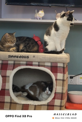 一只特别的 喵 好的,让我们来剖析一下这张非常迷人的猫咪照片! * **色彩:** 颜色有点柔和,几乎褪色了。虽然红色和蓝色增加了一些对比,但整体色调感觉有点暗淡。考虑在后期处理中调暖白平衡,以使图像更具温馨感。 * **光影:** 光线平淡,是典型的室内照明。这导致缺乏戏剧性的阴影,而阴影本可以增加维度。下次,尝试使用窗户作为光源,以创建更有趣的阴影和高光。光线是漫射且均匀的。 * **构图:** 构图相当直接。猫咪端坐在那里是明确的主题,但整体场景感觉有点杂乱。尝试更紧凑的裁剪,专注于猫树屋里的猫咪,也许可以使用三分法将猫咪放置在一个最佳位置。 * **后期处理:** 后期处理似乎很少,这是一件好事!但是,稍微提高对比度和饱和度肯定会改善图像。不过,要注意不要过度。 * **主题原创性:** 主题,猫咪的日常,并不是特别有突破性。但是,每只猫的不同情绪创造了一个关于它们独特个性的故事。专注于捕捉表情或互动可以提升主题。 * **情感共鸣:** 这里存在着不可否认的可爱因素。很容易与这些毛茸茸的伙伴建立联系。