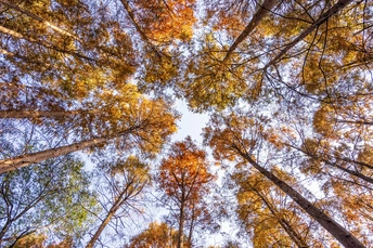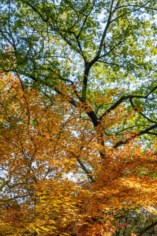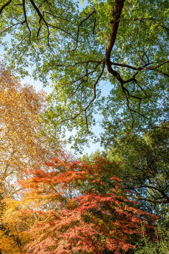仰望枝桠编织天空的经纬,每一片叶都是光的棱镜,折射出四季流转的密语。根系在地底无声生长,树冠却以向上的姿态刺破云层,将年轮刻入苍穹的褶皱,镜头凝固的不仅是空间张力,更是时间与生命互为倒影的哲学——当尘埃在光束中起舞,倔强的绿意早已在光影裂缝里,完成对永恒的温柔突围