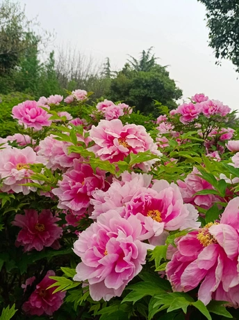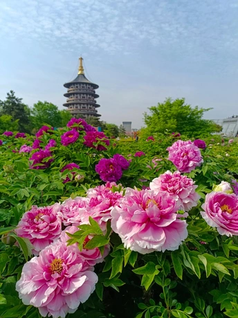 踏入牡丹园,仿佛置身于花的海洋。1000多亩的园区内,300多个品种、20多万株牡丹竞相绽放。姚黄、雪莲、首案红等珍稀品种,或金黄灿烂,或洁白如雪,或娇艳似火,让人目不暇接。花朵大如碗口,层层叠叠的花瓣在微风中轻轻摇曳,散发出阵阵迷人的芬芳,沁人心脾。