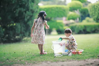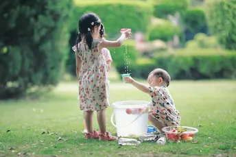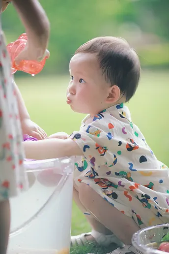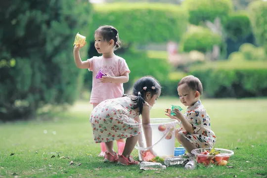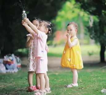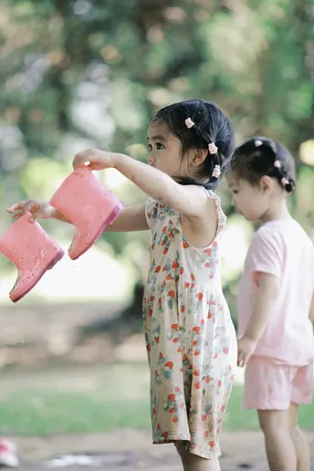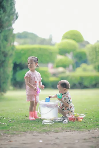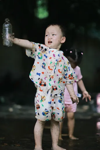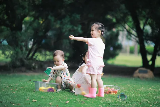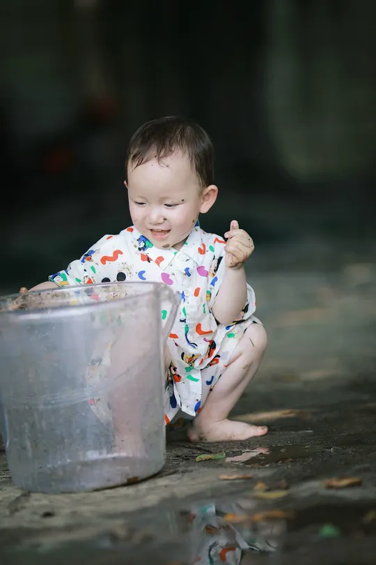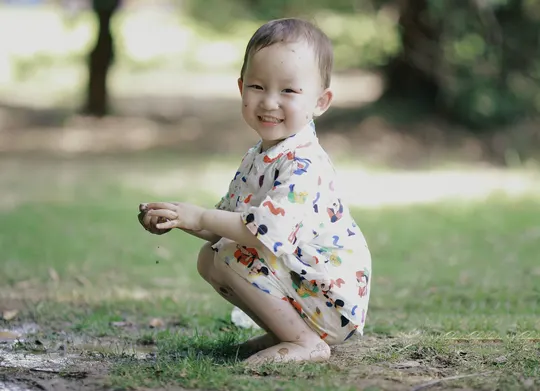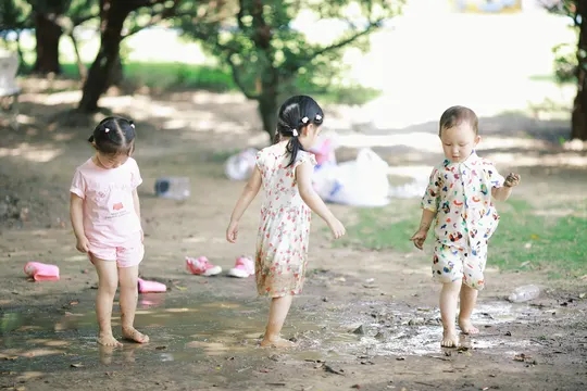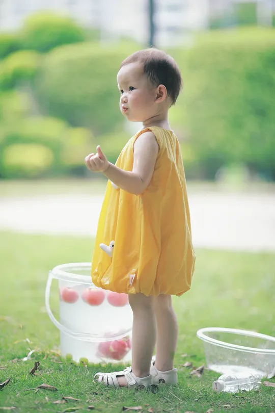 绿草铺茵处,孩童戏兴长。 娇娃弃履轻,赤脚踏泥行。 (小羊阿姨的诗)