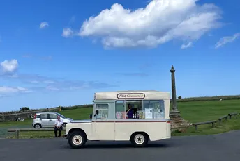 公寓组织的活动,几个小时的大巴到了惠特比,吸血鬼的故乡。走到山上,有英国随处可见的餐车,和天的颜色很匹配,一切都很适宜