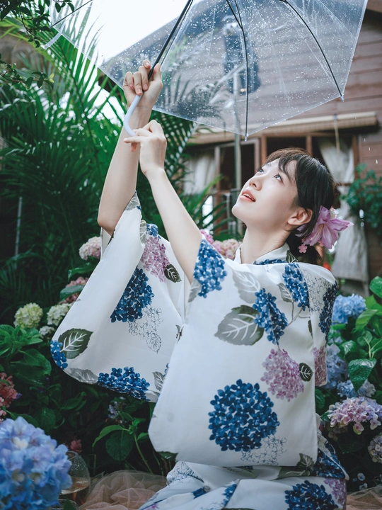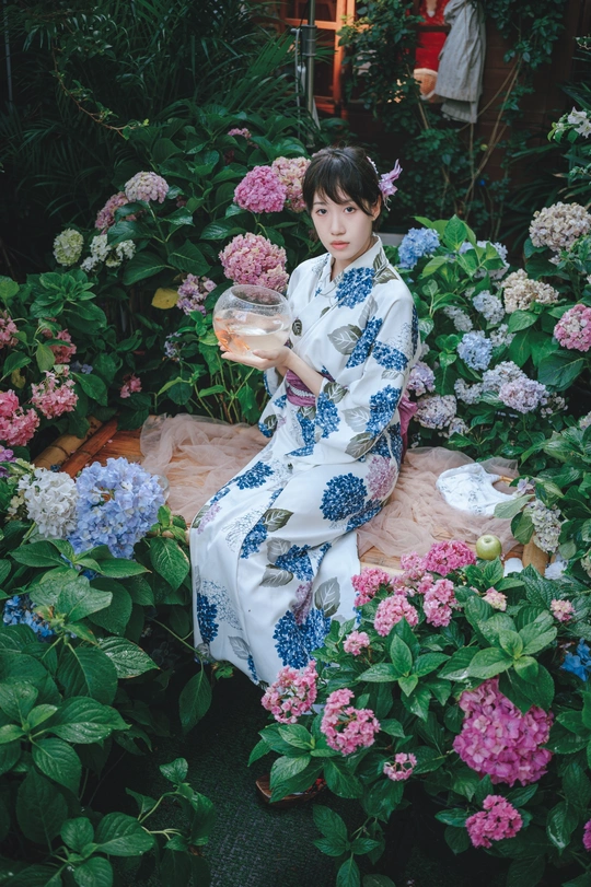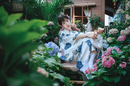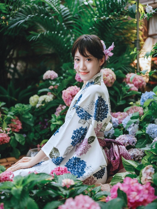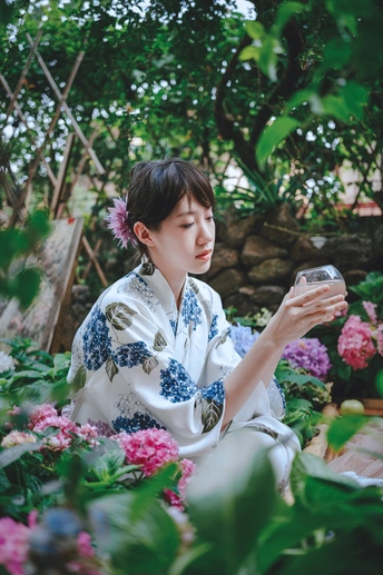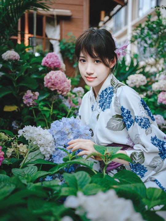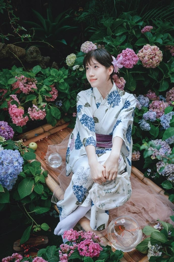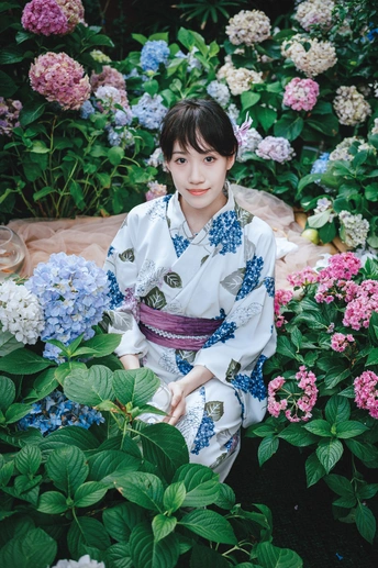 现在正是绣球花盛开的季节,我拍了那么多人像,发现居然没拍过绣球花的主题,刚好找到一间有绣球花的影棚,于是趁着周末有空赶紧过去约拍了一组。 模特居中端坐花丛,和服下摆如扇形铺开,绣球形成包围式蓝紫色背景,这样子的构图最常见也最实用。 设备:尼康Z6,唯卓仕40mm2.5,原厂50 1.8s