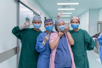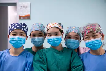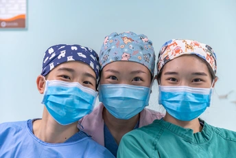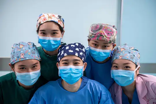 在手术室里,科室组织拍宣传视频,我也跟着去拍了几张手术室里的护士老师的微笑。