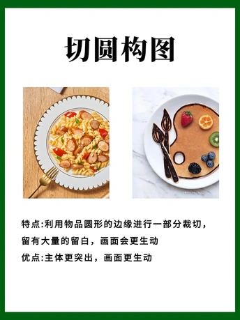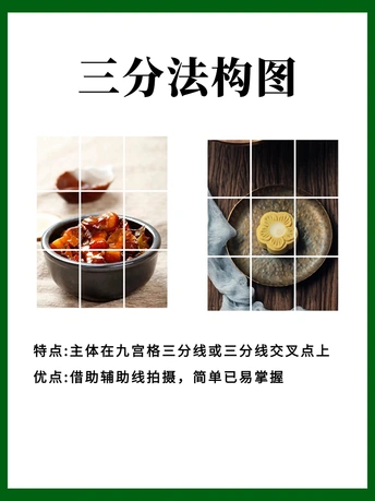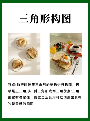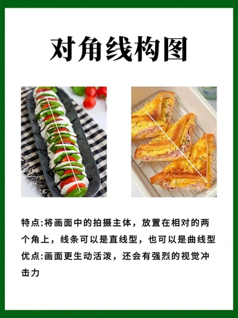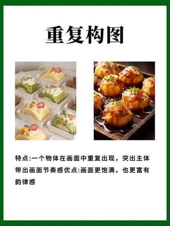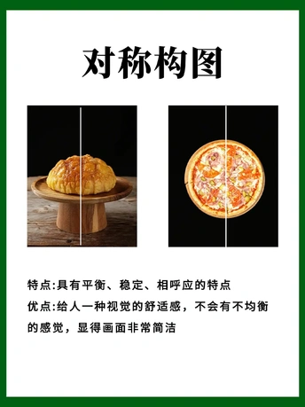 ✨还在烦恼美食照平平无奇?学会这9个构图法,手机也能拍杂志大片!快抄作业👇 ① 居中构图 ✅美食放C位,主体突出0失误! 💡适用于汉堡、蛋糕等单个高颜值食物 ② 三分法构图 ✅九宫格辅助线+美食放交叉点 画面比例更协调,高级感拉满 ③ 对角线构图 ✅食物沿对角线摆,打破呆板 💡披萨/长条形食物用它超灵动! ④ 切圆构图 ✅圆形食物切边+留白 💡聚焦主体,极简风必备 ⑤ 三角形构图 ✅食物摆成三角形状 💡稳定感+视觉层次,沙拉/甜品盘绝配 ⑥ S 型构图 ✅4+个食物摆S曲线 💡 拉伸空间感,西餐摆盘用它秒变高级 ⑦ 重复构图 ✅同款食物规律排列 💡治愈节奏感,面包/甜品台必学 ⑧ 前景构图 ✅薄荷叶/蒸汽当前景虚化 💡层次感+氛围感一键get ⑨ 对称构图 ✅左右/上下对称摆拍 💡极简高级,咖啡/早餐盘超合适