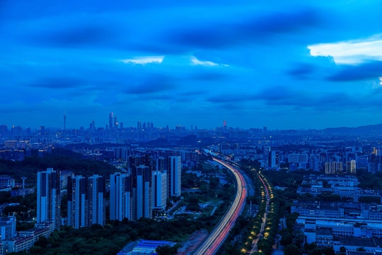 蓝色时刻的沈海高速与广州天际线