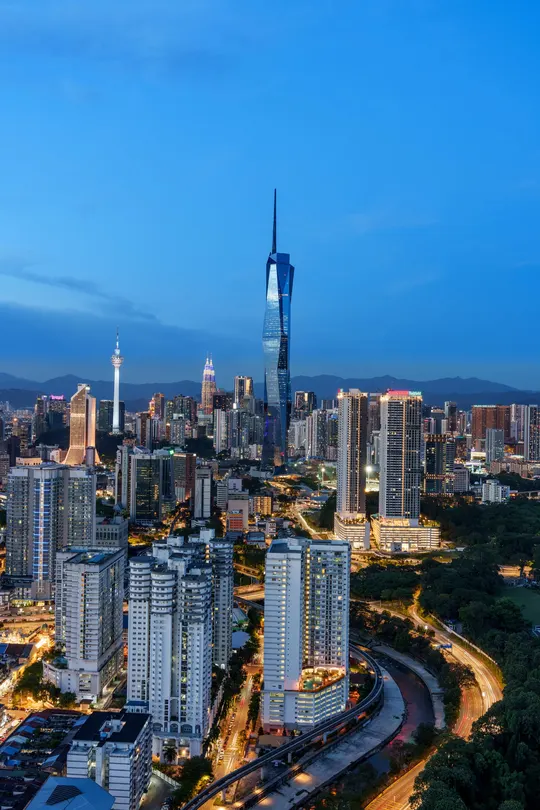 吉隆坡,马来西亚的首都,一座充满活力与魅力的城市,在夕阳余晖褪去后,便迎来了如梦如幻的蓝调时刻。 当夜幕即将降临,整个吉隆坡仿佛被一层蓝色的薄纱所笼罩。城市的天际线在蓝调的映衬下,显得格外迷人,双子塔刺破云端,在蓝色背景下闪耀着璀璨光芒,仿佛诉说着马来西亚的现代传奇。此时的吉隆坡,既有大都市的繁华喧嚣,又在蓝调的渲染下增添了几分宁静与浪漫。