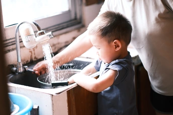 今天看到哈哈在家里说躺就躺,说跳就跳的时候,我也很幸福,感受到了家人对这样一个小宝贝无尽的爱护和包容。 ​ ​我去卫生间拍照的时候,虽然狭小,闻到的都是清爽的肥皂味。 旧客厅里嘎吱嘎吱的电风扇,配的是浅蓝色的椅套,木制家具,这些都在不知不觉中显得和谐美丽。