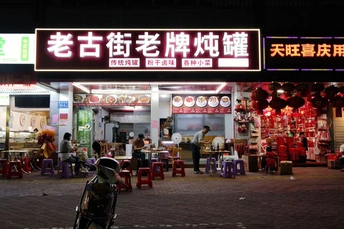 福州是闽地省会,各方特产,山海灵物,都汇聚于此。各色各样的酒肆餐馆,遍布于城里城外。通衢大道之旁,曲径小巷之内,皆有各等活色生香。我于两月前游历闽都,阅美景尝美食所获颇丰,却依然念念不忘瀛洲老药洲街上那一家路边的炖罐店。 我也是由网上的美食传言中,获知这家老古街炖罐的。 那一日平潭游,途中堵车八小时。我们沮丧疲惫,回返福州后,取消原定的某酒楼座位,让司机直驱此地。店很小,一眼看见全部。桌椅二三,路边排场。老板是一个南人北相的老汉,用客气的闽腔招呼我们。大娘点餐:一份干贝鲍鱼、一份花生猪肚、再一份我特别要的炖蛏。加两份米线,再加饮料。我们一共花了64元。 很质朴很原始的做法:新鲜的原料,简单的炖蒸。火候时间,因物而异。店里的一个角落被拦起来,放置了炉灶。大锅里,二十几个瓷罐卧在其中,品种各不相同。掀开锅盖,蒸汽氤氲里,炖罐隐约看见,香气扑鼻而来…… 我们食得爽快。汤很清澈,料很酥软。合蒸的珍馐,原汁原味。鲍鱼和干贝,丰满醇厚;花生与猪肚,香糯滋润;一款炖蛏,火候正好,柔嫩恰当,鲜甜悠长…… 特别惬意!滋味真好啊