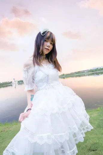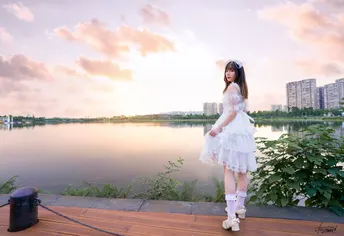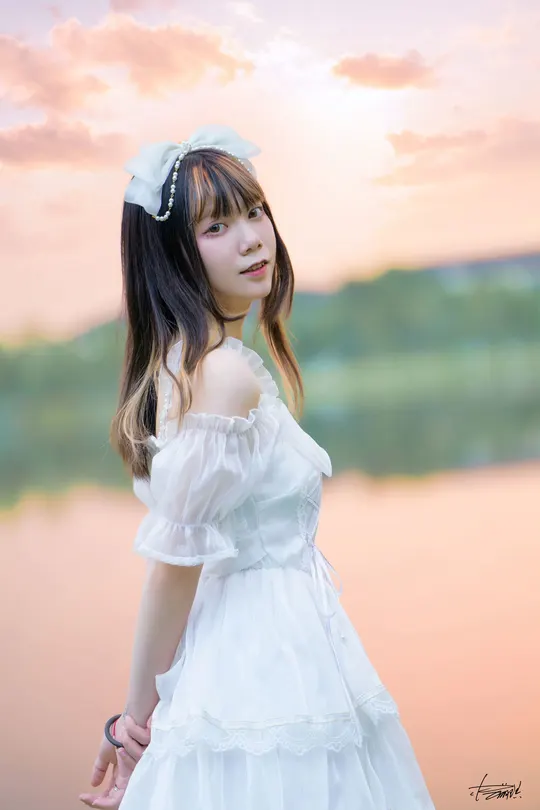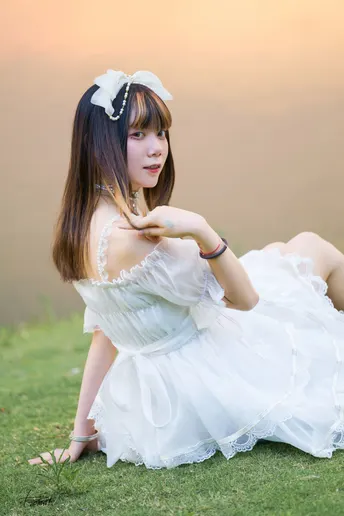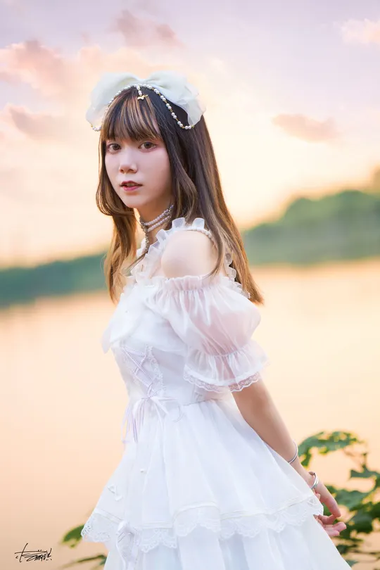 出镜:森祁; 摄影:筱溪; 当夕阳熔化了天际,泼洒下最温柔的鎏金。 她,身披最纯净的白,悄然立于这绚烂的幕布前。 如初雪般无瑕的蕾丝,层层叠叠,是少女未诉说的心语。 裙摆轻扬,在暖金色的风里,盛放成一朵不凋的铃兰。 珍珠点缀的冠冕,笼着柔和的光晕,仿佛下一秒,幸福就要轻轻降临。 这不是一场奔赴终点的婚礼, 而是少女心扉深处,最圣洁的“待嫁”时分。 夕阳为她披上金色的头纱,晚风为她奏响无声的序曲。 在光与影的交界,她安静地等待,或仅仅是沉浸于——这场献给自己的、纯白色的盛大幻想。 她不是谁的新娘, 她是落日余晖里,一首最纯净的散文诗, 是时光凝固的刹那,一封未拆封的情书。