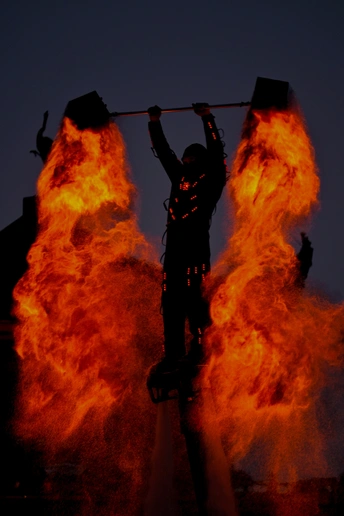 夜幕低垂,当他踏上那片被火焰点亮的舞台,世界瞬间安静。这是火壶表演的日常开场,却藏着不为人知的故事。 为这瞬间,他曾在烈日下反复练习举杆,手臂酸痛到拿不起筷子;钻研火焰节奏时,被火星灼伤皮肤,新伤叠旧疤。每次登台,家人的担忧如影随形,可对火焰艺术的热爱,让他坚守。 表演中,火焰是他的语言,每一次挥舞、停顿,都是与黑夜的对话。那些灼热,不仅锻造了精彩,更让他在烟火里,找到属于自己的光芒,把热爱熬成了生命的底色 。