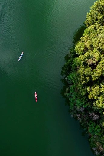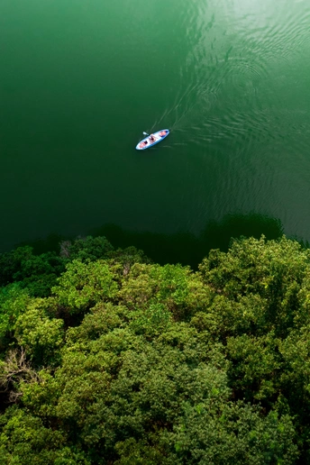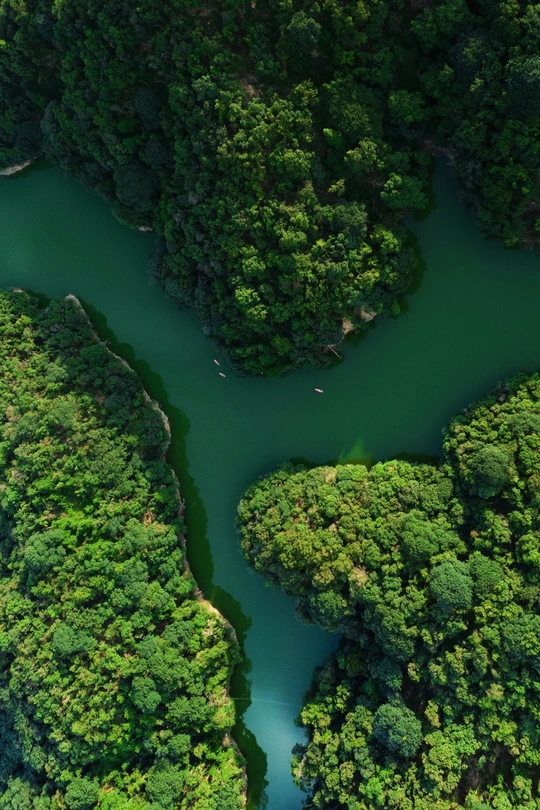 夏天正是玩水的季节,带着桨板到户外去感受自然的魅力,划着桨板在绿水青山间穿梭,人与自然和谐共生,从空中看去简单而又美好。