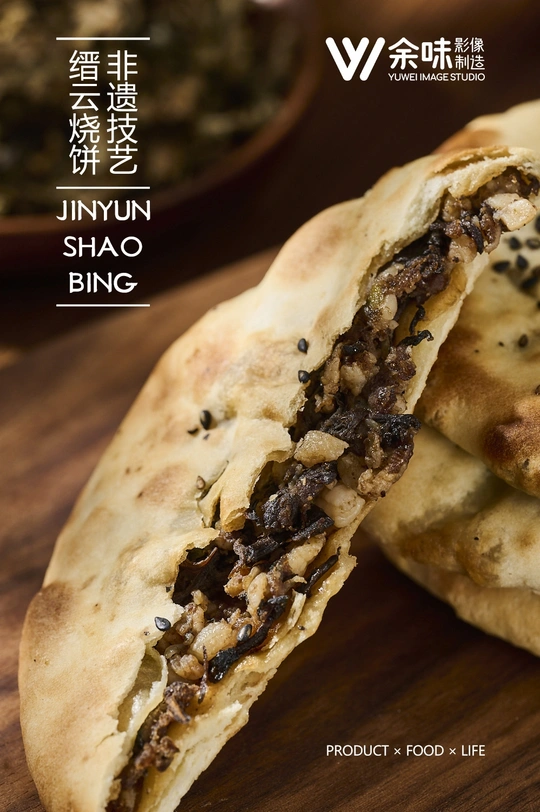 非遗美食-缙云烧饼 浙江丽水特色小吃,以面粉、鲜猪肉、梅干菜为主料,经炭火烘烤而成,色泽焦黄、外脆里嫩,咸香交融。