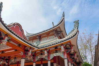 《古建的絮语》 飞檐翘角, 挑起一片蓝天。 雕梁画栋间, 彩绘与时光缠绵。 红柱撑起旧梦, 古建默默无言。 把岁月熬成诗, 在檐角轻轻蔓延 。