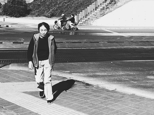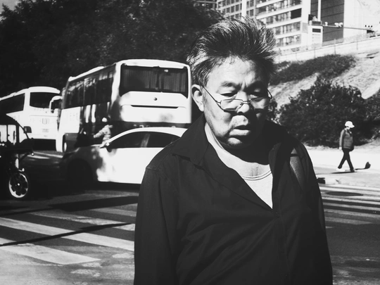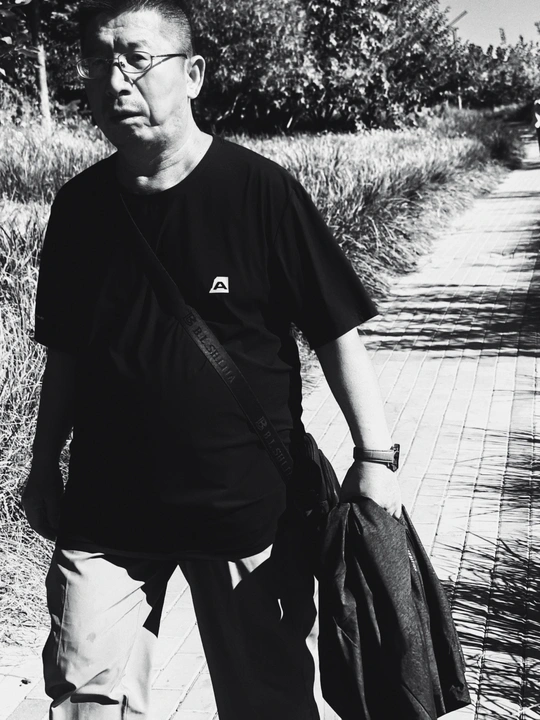 一切都会老去, 春水晃动一张婴儿的脸, 熟悉而又陌生 但你忘不了 是怎样引领季节的潮汐 真快呀,转眼半生 …… (网络诗节选) 这张黑白摄影作品捕捉到了街头行人的瞬间,具有一定的纪实性。从专业角度评价如下: 光影(15/20):光线整体比较硬朗,明暗对比强烈,为照片增添了戏剧性。主体面部有阴影,但细节保留较好。可以尝试利用更柔和的光线,或者在后期处理中调整光影,使画面更具层次感。 构图(14/20):构图上,行人占据了画面较大的比例,背景中的车辆和行人提供了环境信息。但是,前景人物略微偏离中心,可能导致视觉中心不够明确。可以尝试将主体放在更符合黄金分割的位置,或者调整拍摄角度,使画面更平衡。 色彩(8/10):黑白影调简洁有力,突出了光影和形态。转换成黑白照片是一个很好的选择,减少了色彩干扰,更能突出主题。 主题意义(13/20):照片展现了城市生活中的一个瞬间,具有一定的社会观察意义。如果能进一步挖掘人物的内心世界,或者通过画面元素表达更深刻的主题,会更有力量。可以尝试捕捉人物更生动的表情或姿态,或者通过环境描写来烘托人物的心境。 氛围(8/10):照片营造了一种平静略带忧郁的