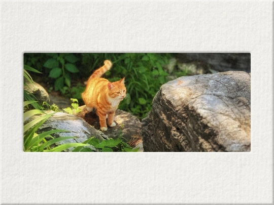 这张照片拍得不错,小橘猫在绿植和石头中显得非常可爱!我们来细看一下: * **色彩**:整体绿色调很舒服,橘猫的颜色也很醒目。但是,绿色有点过于饱和,可以稍微降低一点,让画面更自然。 * **光影**:光线不错,猫的脸部细节清晰。如果能有更柔和的光线,比如日落时分,效果会更好。 * **构图**:构图略显平淡,猫的位置有点居中。可以尝试三分法构图,让猫的位置更偏向画面的一侧,留出更多的空间。 * **后期处理**:后期处理整体还可以,但绿色饱和度略高,建议调整。另外,可以稍微提高一点对比度,让猫的轮廓更清晰。 * **主题原创性**:猫咪的照片比较常见,但这张照片的场景选择还不错。可以尝试不同的角度和场景,拍出更具个性的猫片。 * **情感共鸣**:猫咪的眼神很可爱,能引起观者的喜爱。可以尝试捕捉猫咪更生动的表情,增加情感共鸣。 * **思想深度**:照片主要展现了猫咪的可爱,思想深度稍显不足。可以尝试通过照片表达人与自然的和谐关系。 **改进建议**:下次拍摄时,注意调整光线和构图,尝试不同的角度和场景,捕捉猫咪更生动的表情。后期处理时,注意色彩的平衡