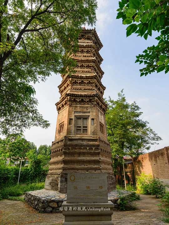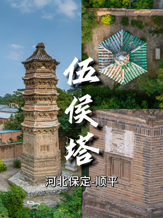 在南伍侯村,有一座千年古塔——伍侯塔。始建于辽代,却仍带着唐风余韵。它是少见的六角五层密檐式砖塔,高达22.5米,兼具密檐塔与楼阁式塔的特征。 塔基极为讲究,由石台基与高大的砖基组成,五层须弥座雕刻壶门,壶门内有人物、飞鸟、花卉等精美纹饰,线条流畅,刀法洗练,展现出辽代雕刻艺术的高超水准。 一层塔身设有砖雕假门与佛龛,龛内仍残存造像;四周盲窗饰菱花格,塔心室为穹顶。五层檐口以砖仿木结构,斗拱、阑额、檐枋俱全,檐缘镶嵌琉璃剪边,彩色至今依稀可见。 塔刹为琉璃莲花宝珠式,塔顶还留有琉璃瓦当,在阳光下闪耀,诉说着昔日的辉煌。 它不仅是辽代砖塔的代表,更是研究辽代建筑形制与雕刻工艺的珍贵实物。2013年,伍侯塔被列入第七批全国重点文物保护单位。 千年风雨,它仍静静伫立。走近伍侯塔,你能感受到那份辽风唐韵与时光的厚重。
