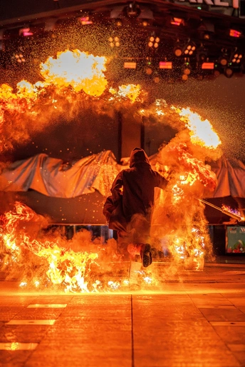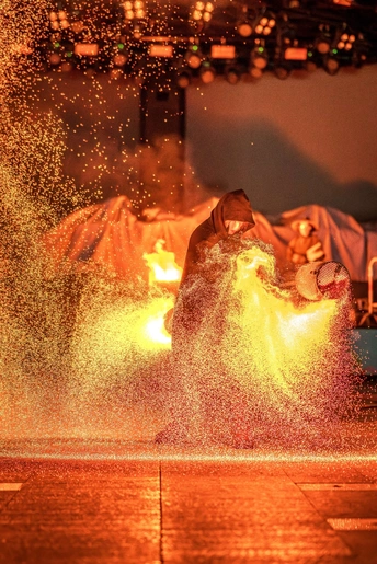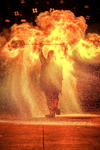 “邕城火韵” 传递南宁火壶表演的独特韵味,“非遗奇旅” 赋予表演探索、奇妙的体验感。 在南宁湿热夏夜,火壶匠人如神秘 “焰灵使者” 登场。高温铁水经火壶泼洒,化作金色流星雨,与邕江夜景交融。想象这是千年前邕州先民用火焰与自然对话的仪式重现,火焰是连接古今的时空纽带,每朵火花都藏着南宁的历史故事,借镜头让古老非遗在现代光影里 “复活”,诉说城市对火焰艺术的传承与热爱 。