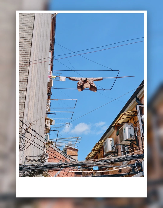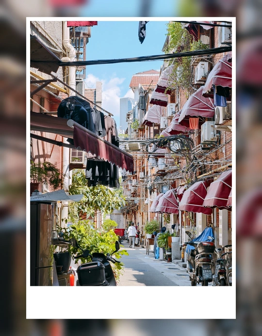 上海弄堂像一条浸在时光里的棉线,细细密密,缝着柴米油盐,也缝着岁月里那些说不尽的软。 晨雾漫进石库门的铜环时,弄堂便醒了。晾衣绳在两墙之间搭起虚线,蓝布衫与格子裙随穿堂风轻轻撞着,像未说出口的絮语。墙根青苔洇着昨夜的雨,砖缝里钻出几茎狗尾巴草,摇摇晃晃,倒比墙头上那尊缺了角的石狮更像这里的主人。 自行车铃从深处滚过来,叮铃铃的,惊飞了窗台上打盹的白猫。穿拖鞋的阿婆端着搪瓷盆出来,盆底的水渍在青石板上洇出小小的云。“张家姆妈,今朝小菜新鲜伐?”“蛮好蛮好,去晚了要被抢光咯!”话音裹着煤炉的烟火气,在潮湿的空气里慢慢散。 午后的阳光斜斜切进来,在地面织出格子。孩子们踩着光影追逐,皮球撞在斑驳的墙面上,弹起一声闷响,惊得墙缝里的蟋蟀停了声。有晾在竹竿上的床单垂下来,挡住半扇窗,窗后传来评弹的弦索,咿咿呀呀,和着远处电车驶过的哐当声,揉成一团软糯的调子。 暮色漫上来时,路灯在檐角亮起昏黄的光。晾衣绳上的衣裳收了,只剩下空荡的绳子在风里晃。谁家的厨房飘出红烧肉的香,混着隔壁炒青菜的清苦,在弄堂里缠缠绕绕。晚归的人踏着自己的影子往里走,皮鞋敲在石板上,声音被两侧的楼房轻轻接住,温温柔柔地送向深处。