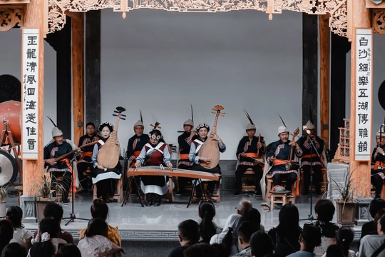白沙细乐,纳西语称“崩时细哩”,是丽江纳西族的传统音乐。笛、芦管、云锣、胡琴、苏古笃等传统乐器交织出的悠远旋律,如山涧清泉,缓缓流淌。乐曲缠绵悱恻、哀婉动人,被誉为“音乐的活化石”。