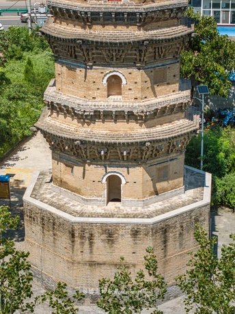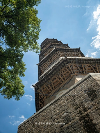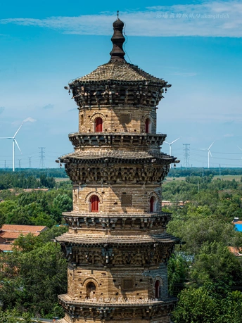 在衡水故城县西南的饶阳店镇,有一座历经千年风雨仍巍然耸立的古塔——庆林寺塔。它始建于北宋,比肩北方名塔,至今已有近千年的历史。 整座塔 平面八角形,高35.67米,共六层,属于典型的楼阁式砖塔。登临其中,就像走进一座“砖石迷宫”:绕心室拾级而上,曲折盘旋直通塔顶。 外墙四面开券门,斜面砌盲窗,装饰纹样多达二十余种——有毬钱纹、菱花索子纹、龟背纹、万字不到头……简直是古代工匠的“花纹图鉴”。 塔内的佛龛里,还保存着泥塑佛像与须弥山造型,岁月斑驳,却依旧静穆安然。抬头望去,塔刹铁制,由覆钵、相轮、宝珠层层相叠,散发着古朴而坚毅的力量。 这座塔历经 明嘉靖年间重修、1976年修缮、2011年大修,依旧保持着宋塔的风貌。2006年,更被列为全国重点文物保护单位。 走近庆林寺塔,就像和一位千年前的宋代建筑师对话。它不仅是一处佛教遗存,更是一座刻满古代匠心与信仰的“砖石史书”。
