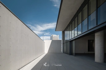 姑苏区新晋美术馆!预定即将爆火 华贸在姑苏区打造了一座全新的当代艺术空间 ——H+美术馆 由建筑大师安藤忠雄亲手设计 建筑面积8,500㎡ 展厅面积达2,600㎡ 它不仅是一座美术馆 更是“城市中的精神花园” 🏛清水混凝土的极简诗学 安藤忠雄最著名的建筑语言——清水混凝土 在这里被完整呈现 这种工艺要求极高 每一块墙体都像经过精密雕刻般光洁 没有多余装饰 它的冷峻和简洁 反而让光与影成为空间的主角: 白天 阳光透过狭长的缝隙投射进来 像是时间的刻度; 夜晚 灯光洒落在灰色墙面上 带来宁静的包裹感; 当人置身其中 仿佛被邀请进入一场关于“秩序与自由”的对话 ✨三大必打卡机位 👉1️⃣馆内公共空间 清水混凝土墙面+几何楼梯 呈现极简冷静的美感 在光影交织的角落拍照 人物会被衬托得格外突出 推荐用低饱和度滤镜 氛围感拉满 👉2️⃣屋顶花园「水之露台」 跟随回游式动线登顶 眼前豁然开朗 水面与天空连成一片 远处是姑苏运河 最佳拍摄时间是黄昏或清晨 能拍到光影与水波交织的治愈画面 👉3️⃣艺术作品&长椅 美术馆内复刻了安藤作品中标志性的长椅