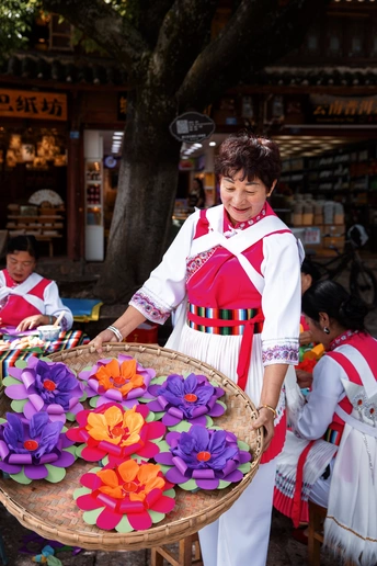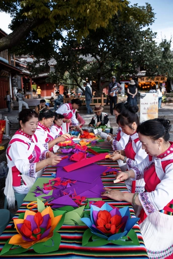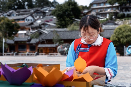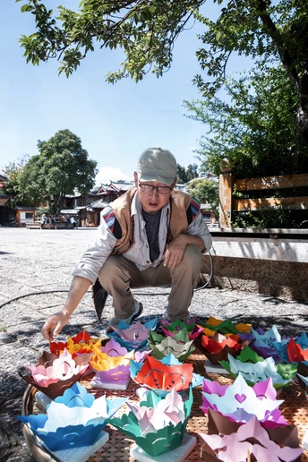在丽江古城的四方街和玉河广场,纳西族的居民们正用心制作着河灯。彩纸在手中翻飞,烛光在眼前闪烁,每一盏河灯都承载着对亲人的思念与对美好生活的祈愿。9月5日中元节,这些河灯将被放入水中,化作点点星光,照亮古城的夜空。
